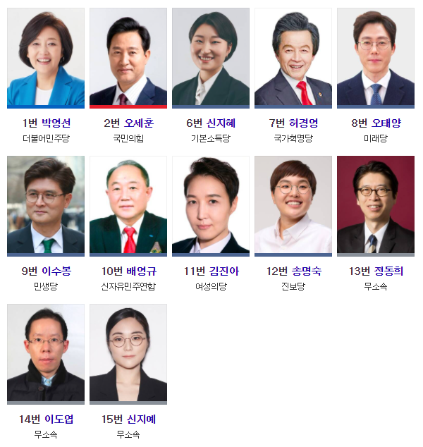 서울시장 / 부산시장 후보들을 한 번 볼까요?