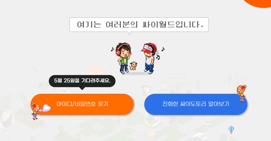 기존 싸이월드 회원들의 '아이디 찾기 예약 서비스'를 시작했습니다.