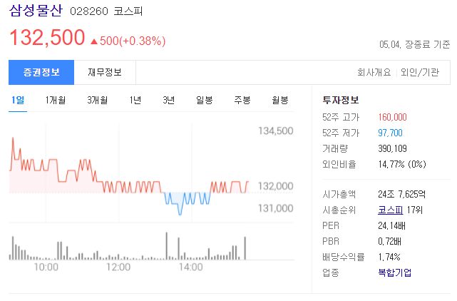 주가가 상승하는 모습을 보여주고 있습니다. 이번 상속 이후 삼성물산이