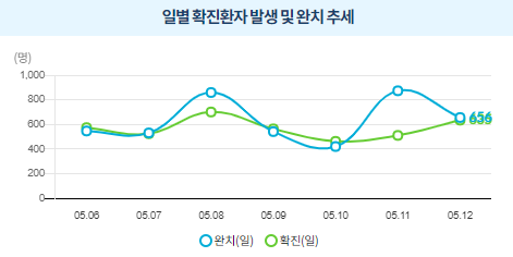 어제 5/12 기준으로 우리나라 코로나 19 현황을 한 번 볼까요?