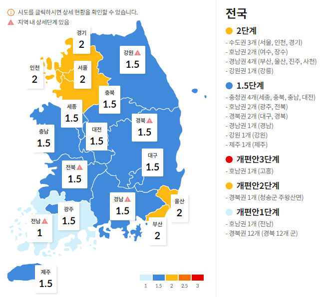 3. 지역별 거리두기 단계