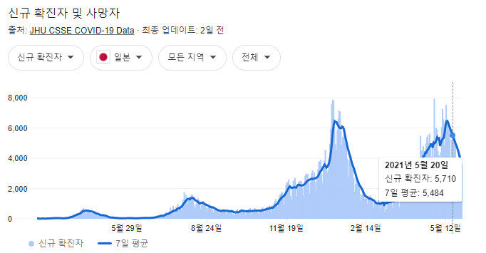 하루 평균 4,000 ~5,000명 씩 발생하는 상황이고, 올림픽이 열리는 도쿄의 경우
