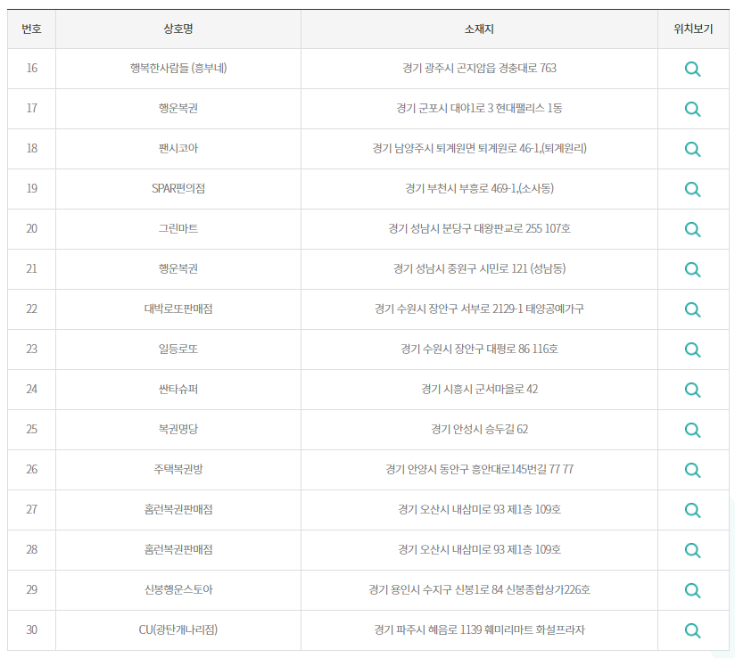 회차별 로또 복권 당첨 지점을 확인하고 싶으신 분들은 아래 링크를 클릭해주세요!