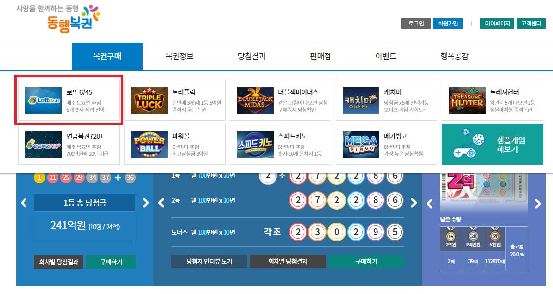 동행복권 사이트에 들어가면 매주 로또 복권의 당첨 결과와 동시에