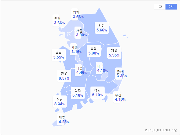 역시 전남 지역이 8.34%로 가장 높은 접종률을 보여주고 있습니다.