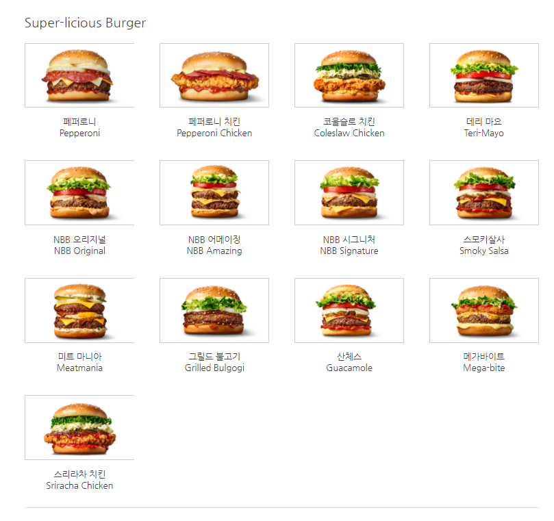 아래 노브랜드 버거에서 판매중인 메뉴를 한 번 볼까요?