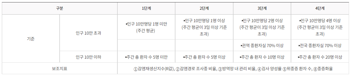 가장 중요한 것이 바로 거리두기 단계 및 격상 기준입니다.