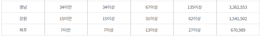 그렇다면 본인이 살고 있는 지역의 기준을 봅시다.
