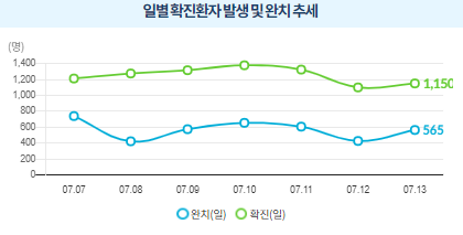 일일 확진자 수가 이미 1,400명을 넘어서며 7/14 자정기준으로 발표가 되는