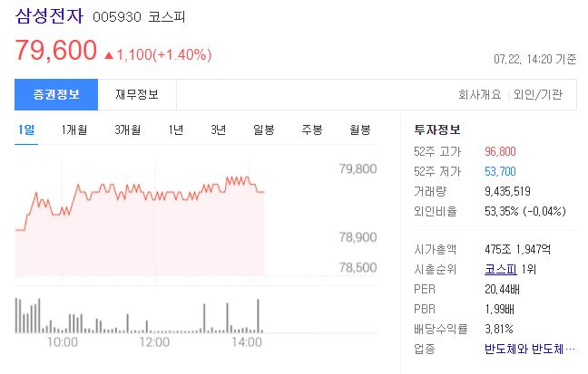 2분기 깜짝 실적에도 불구하고 떨어지기만 하는 삼성전자 주가