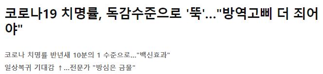 현재 우리나로 코로나19에 대한 치명률은 반년새 10분의 1 수준으로