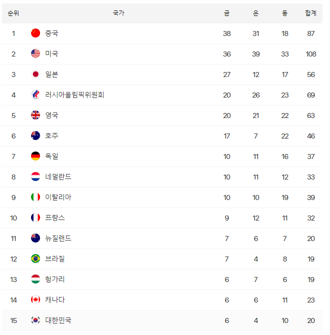 | 도쿄올림픽 최종 순위, 우리나라 메달 성적은? (역대 올림픽 순위) (6) | 2021.08.08 |