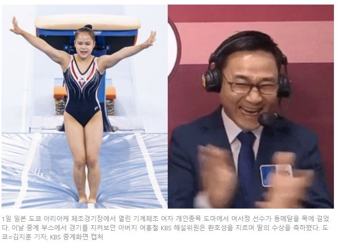 당시 여홍철 해설위원은 본인의 딸인 여서정 선수가 2020년 도쿄올림픽에서
