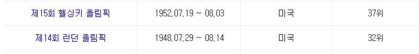 한 번 볼까요? 하계 올림픽 기준 기록입니다.