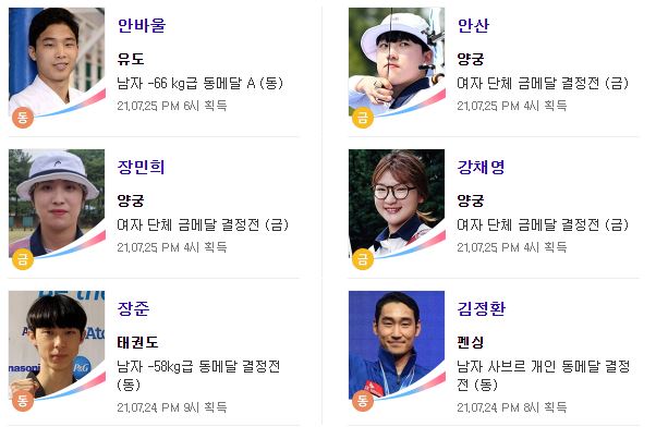 도쿄올림픽 대한민국 메달 리스트
