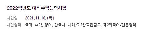 아닙니다! 교육부 발표에 따르면 올해 2022학년도 대학 수학능력은