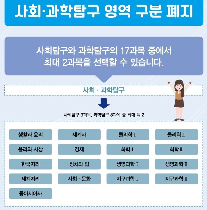 과학탐구 영역에 속한 과목들만 선택할 수 있었지만, 올해부터 사회/과학 탐구