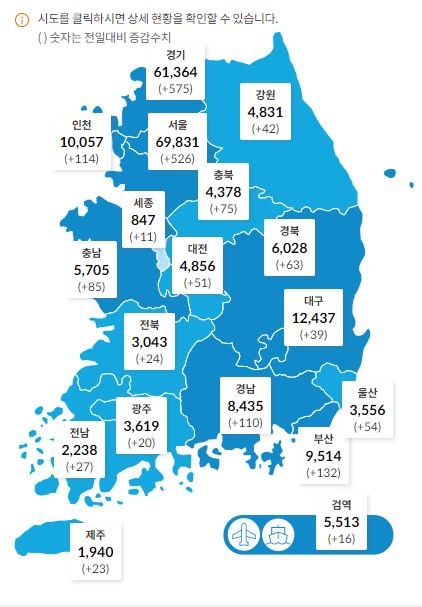 제가 매일매일 일일 확진자 수와 함께 확인하는 수치가 바로 지역별(시도별)