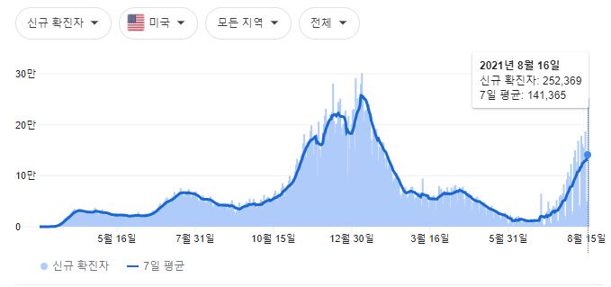 그리고 코로나19 백신 접종률이 50%가 넘어가는 영국과 미국 확진자를 보시면,