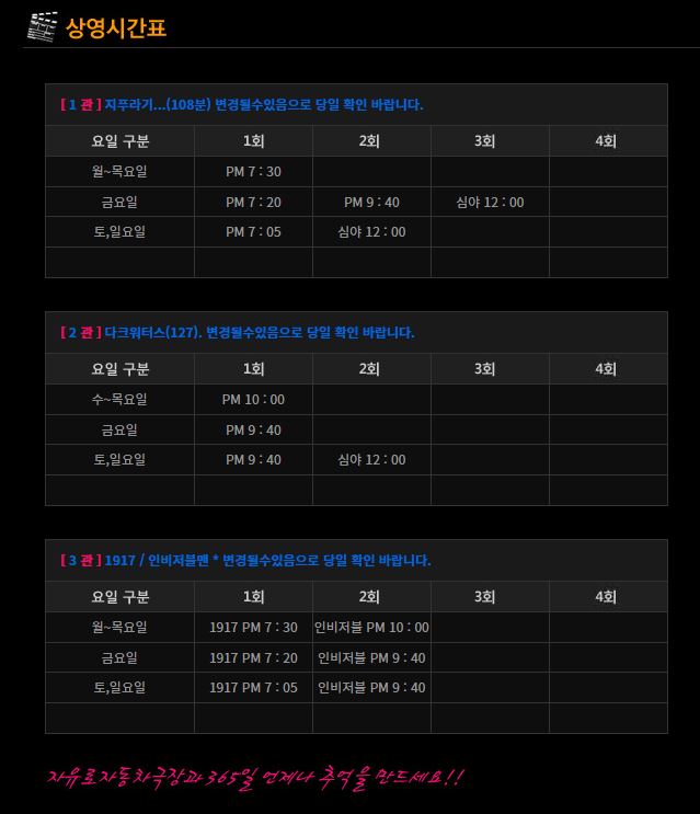 제가 볼 영화 뒤쪽으로 다른 상영관이 하나 더 있고, 매표소에 확인해보니