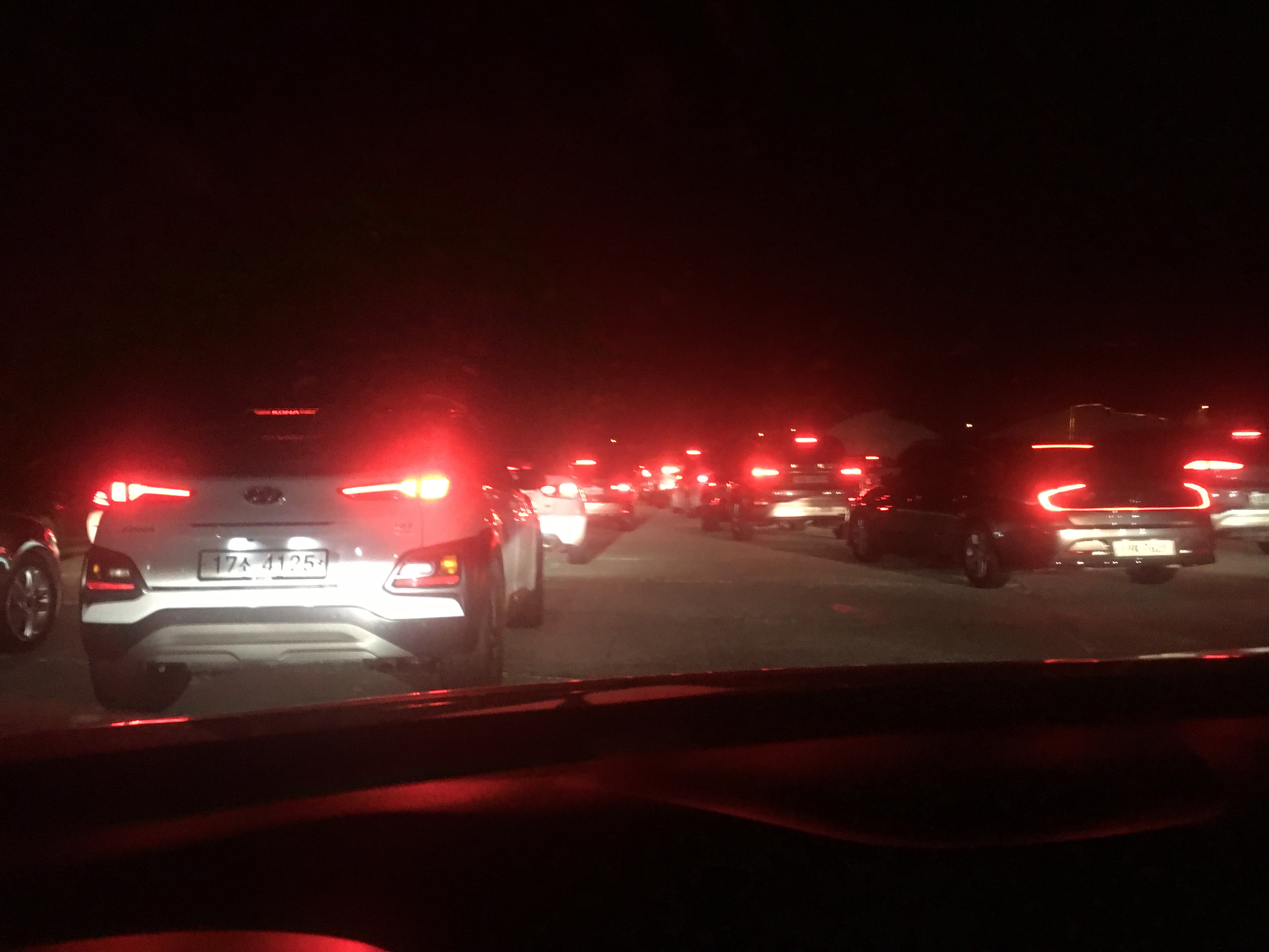 자동차 극장으로 몰리는 것 같아요. 저래서 영화 시작 전에 다 들어올 수 있을까 싶네요 ㅎㅎㅎ