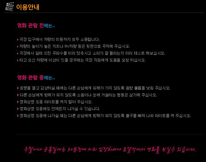 자동차 영화관은 처음이라 이용 안내도 한번 읽어봤습니다.