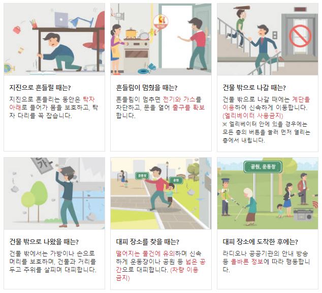 이제 지진이 언제 어디서 일어나도 이상한 것이 아니기 때문에 지진 발생 시 행동 요령을