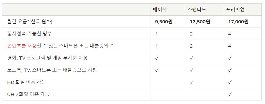 넷플릭스 한국 요금제는 아래와 같습니다.