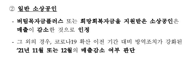 2) 매출이 감소 또는 감소가 예상되는 21. 12. 15 이전 개업 소상공인 / 소기업으로
