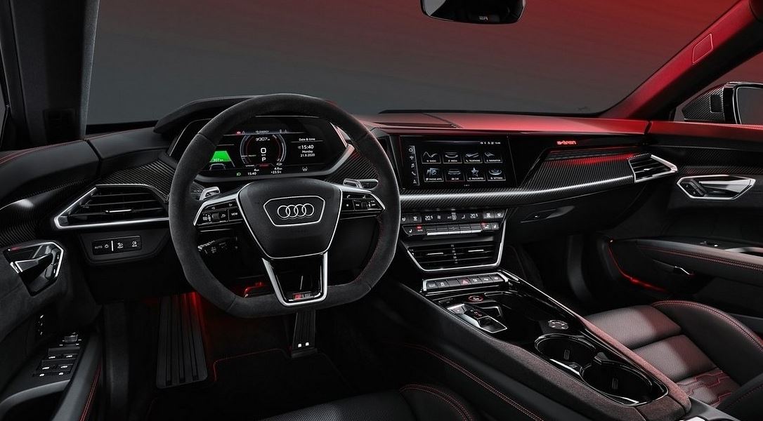 아우디 RS e트론 GT는 나파 가죽 스포츠 시트, 발광 도어 트림을 적용하여 스포티한 느낌을
