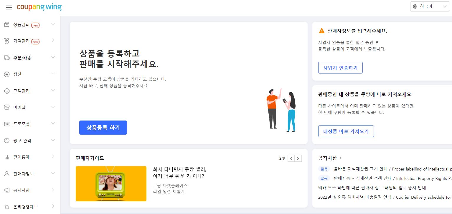 많은데요, 혹시 물건 판매에 관심이 있는 분들은 쿠팡 판매자센터를 활용해보시는 것도