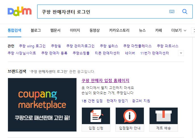 포털사이트에 <쿠팡 판매자센터 로그인>을 검색한 후 아래 <쿠팡 판매자 입점 홈페이지>로