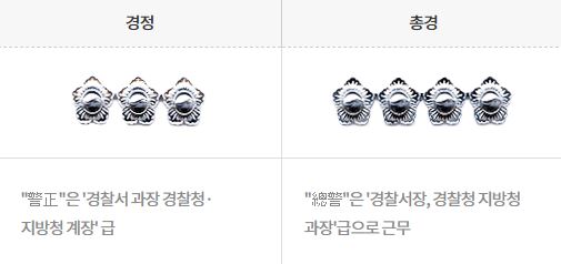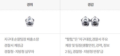 오늘은 모두가 한 번씩 또는 자주 봤지만 자세히는 알지 못했던 경찰 계급표과 계급장