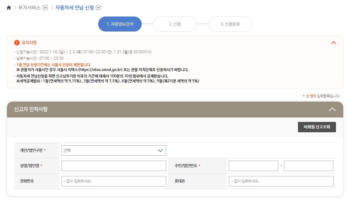 1. 자동차세 연납 신청 방법
