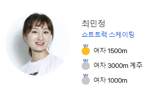 ▶ 쇼트트랙 1500m 금메달, 1000m/3000m 계주 은메달 최민정