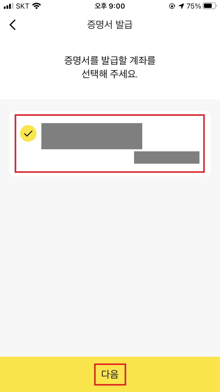 마지막으로 통장사본을 발급받을 계좌를 선택해 주시고,