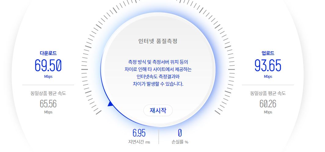 마지막으로 핑테스트를 진행한 후에 인터넷 속도 결과를 확인할 수 있고,